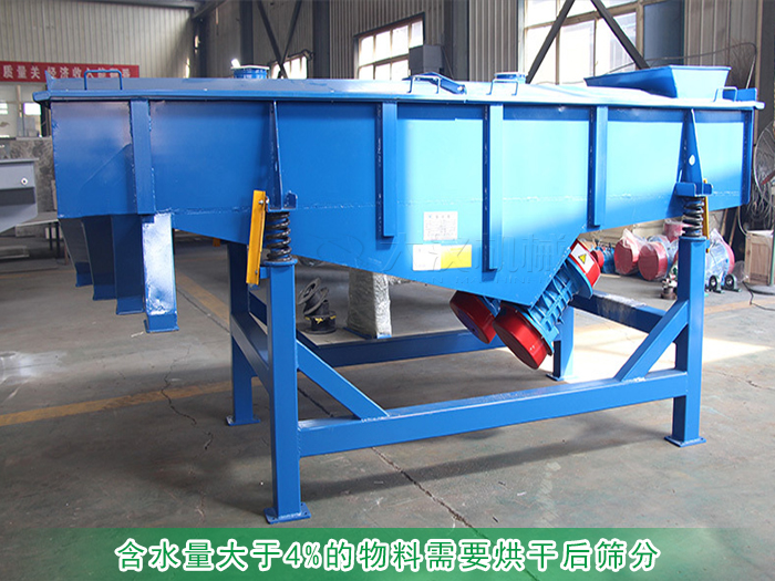 直線振動(dòng)篩在篩分含水量高或者粘性高的物料時(shí),需要減少物料的含水量后才能篩分使用,因?yàn)楹扛叩奈锪细哂姓吵硇?,在篩分過(guò)程中容易吸附在篩網(wǎng)上,造成篩網(wǎng)堵塞,對(duì)于含水量大于4%的物料需要烘干后篩分,含水量大于20%時(shí)需要采用濕式篩分。