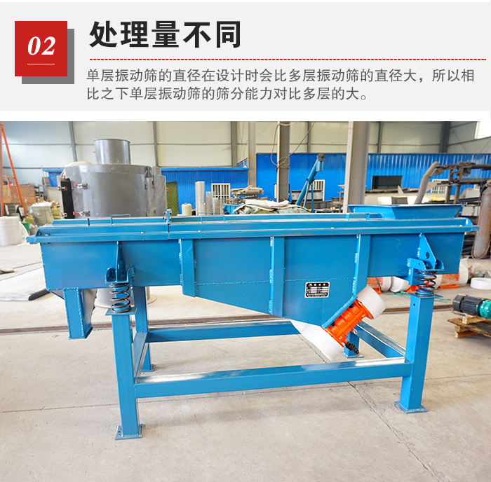 單層振動篩在于多層振動篩相比時(shí),其多層振動篩用料會比單層振動篩要多,所以價(jià)格就會較貴,就像買手機(jī)一款手機(jī)其不同的處理內(nèi)存,價(jià)格就會高出100-200元。所以其單層要比多層的振動篩便宜。