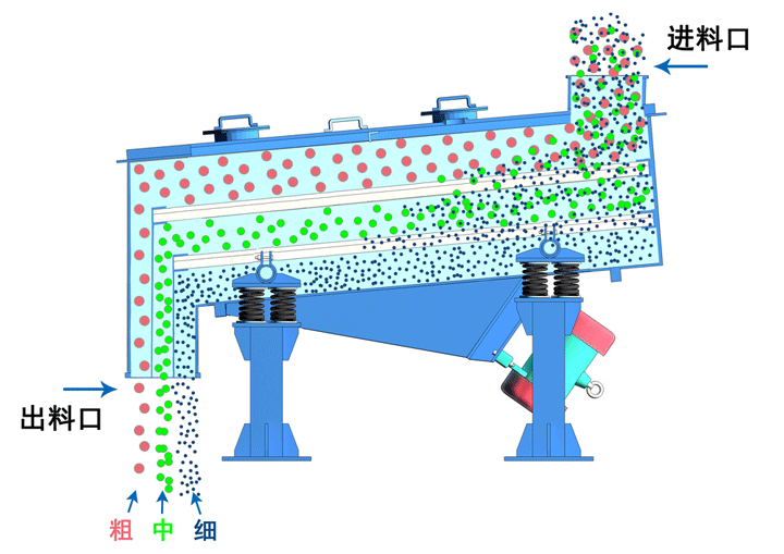 礦用振動篩是通過分離不同尺寸的材料以及從不需要的尺寸過小的顆粒中去除采礦材料的粉塵來改進采礦材料的工藝,由篩網(wǎng)和驅(qū)動系統(tǒng)組成,該篩網(wǎng)將細顆粒與粗顆粒分離,驅(qū)動系統(tǒng)產(chǎn)生必要的振動或旋轉(zhuǎn),以便在篩板上移動、松散和運輸篩分材料。