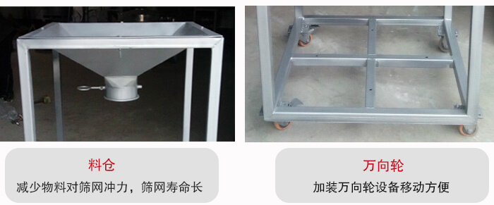 移動式振動篩又叫振動篩料倉一體機,底部加裝萬向輪,可360度旋轉移動,主要應用于篩分場所不固定的環(huán)境,便于用戶移動,滿足不同地點的工作需要。通過調(diào)節(jié)料倉中的蝶閥從而控制物料進入振動篩的流量,然后振動篩進行篩分作業(yè),本品的特點間歇性加料,不用工人不間斷投料節(jié)省人工,蝶閥控制流量大小能提高篩分精度。